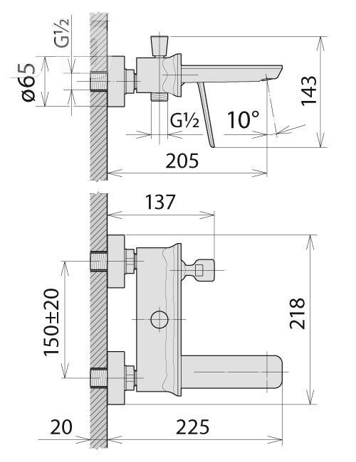 Висота змішувача - 143 мм,