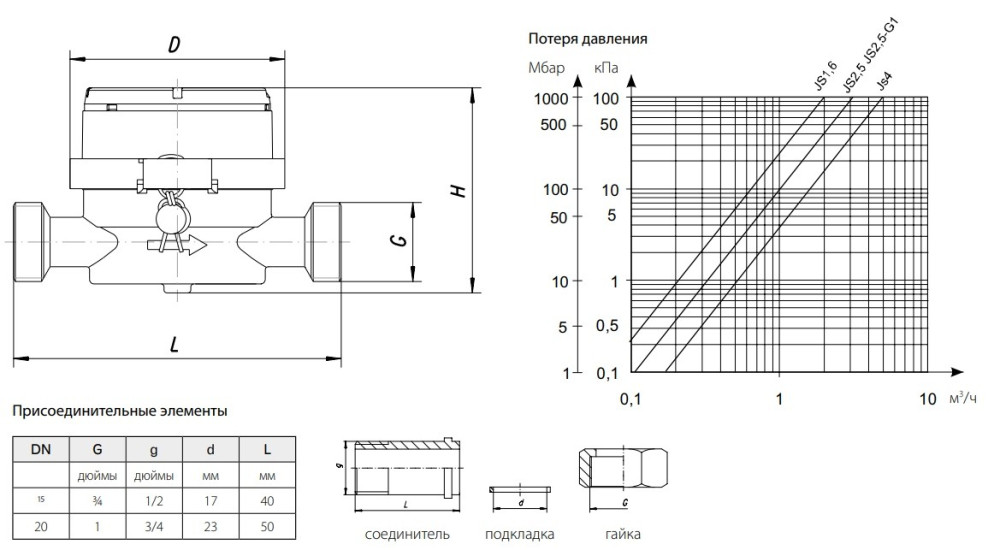 Номінальна витрата води (Qn) - 1.6 м³/год,