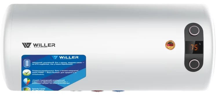 Водонагреватель горизонтальный WILLER EH80RI Horizon, 80 л. Горизонтальный, мокрый ТЭН, цилиндрический