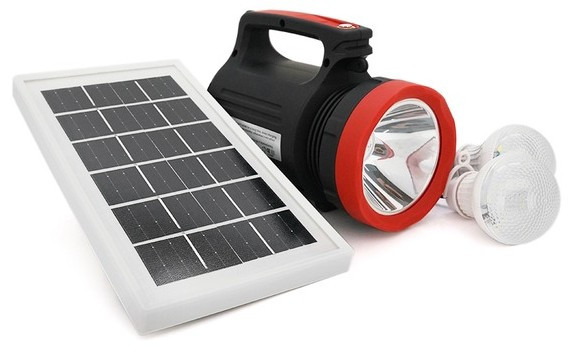 Переносний ліхтар LX-1902+Solar, 3 режими, сонячна панель, вбудований акум 7200mAh, 2 лампочки 3W, СЗУ, Black, Box (Y-33458)