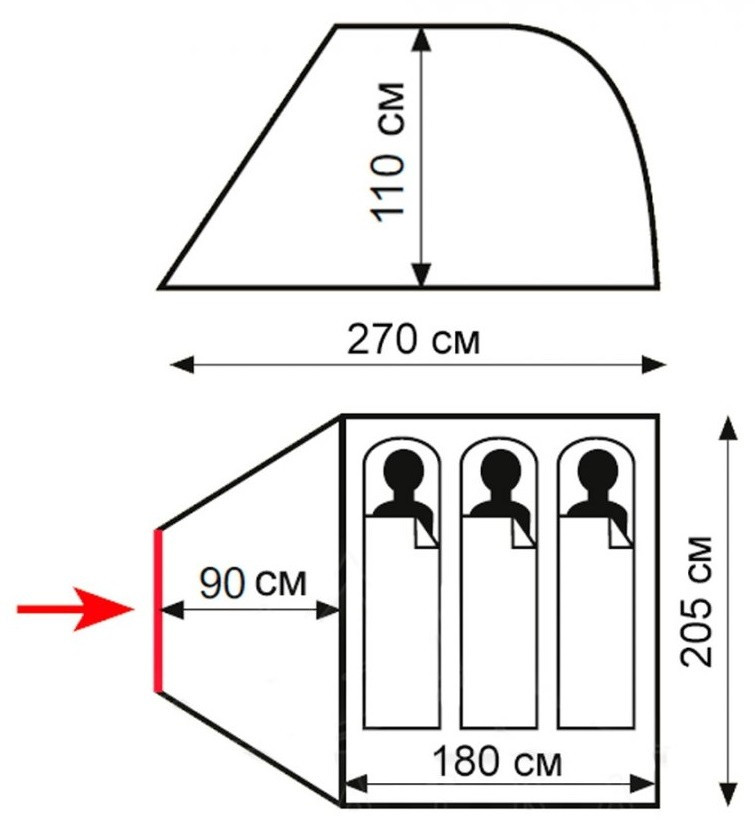 Довжина тамбуру - 90 см,