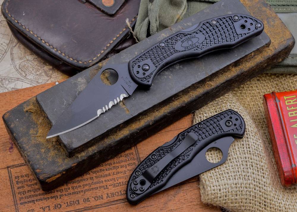 Ніж складний Spyderco Delica 4 Black Blade, напівсерейтор (C11PSBBK)
