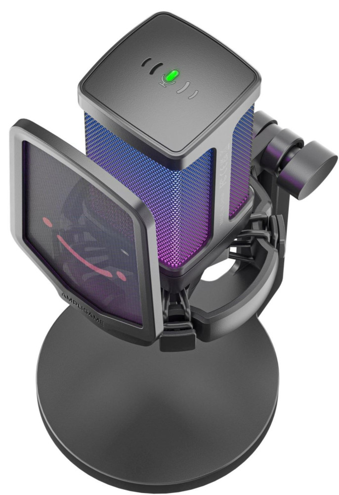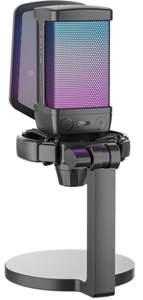 Мікрофон Fifine Q6, Black, USB, підключення дротове, кабель 2 м, RGB підсвічування, - 43 дБ, з регулятором чутливості, з антивібраційним кріпленням та поп-фільтром, дискова стійка