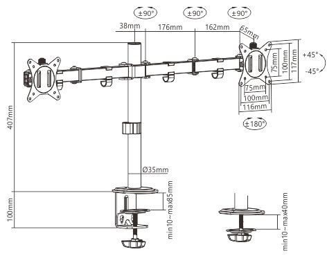 Настільне кріплення HiSmart для двох моніторів 17`-32` (HS082406)