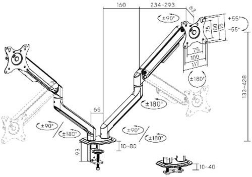 Настільне кріплення HiSmart для двох моніторів 17`-32` (HS082451)