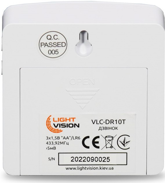 Дверний WiFi дзвінок Light Vision VLC-DR10T(Tuya) Black з ІЧ-датчиком руху (75-00186)