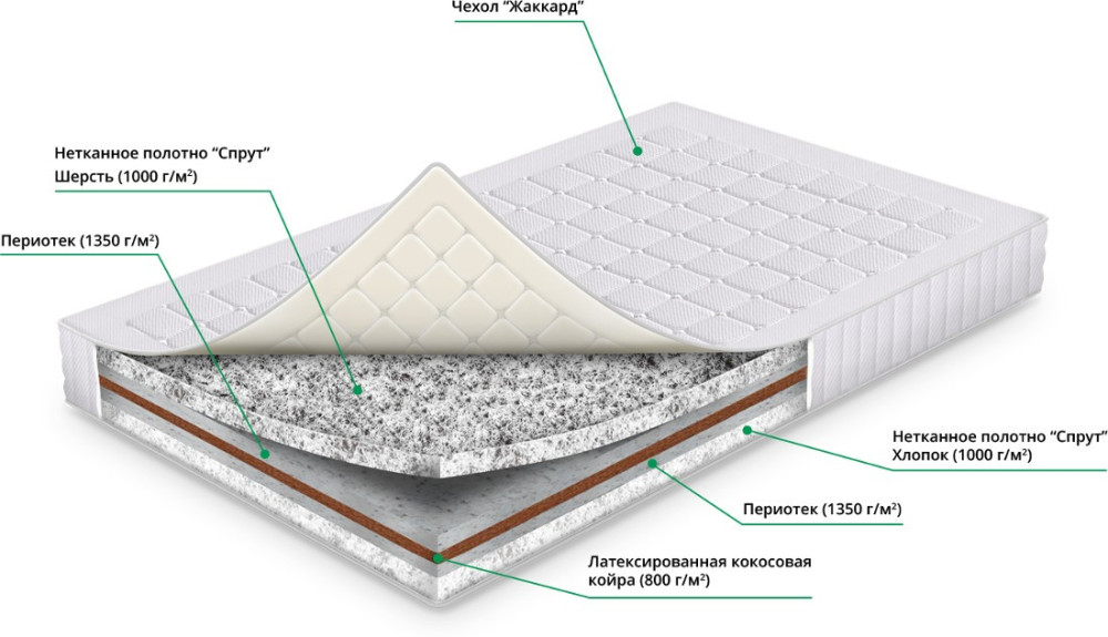 Наповнювач - спрут вовна, періотек, кокосова койра, спрут бавовна,