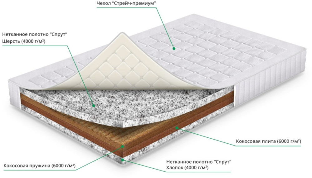 спрут вовна, спрут бавовна, кокосова плита, кокосова пружина