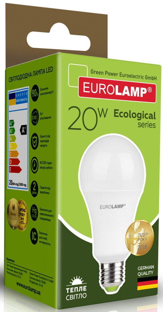 Лампочка Eurolamp LED EKO A75 20W 3000K E27