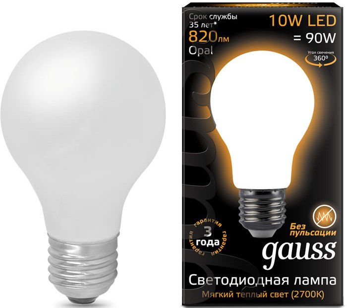 Лампочка Gauss LED A60 10W 2700K E27 102202110