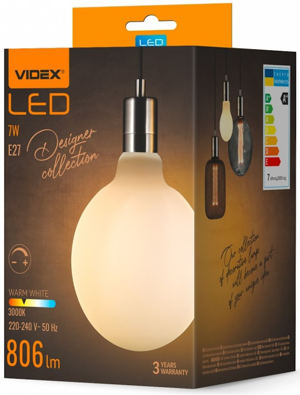 Лампочка Videx Filament G125 Dimmable 7W 3000K E27