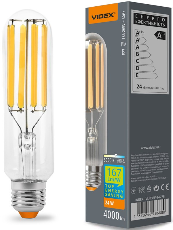 Лампочка Videx Filament T38F 24W 5000K E27