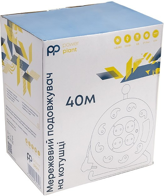 Подовжувач на котушці PowerPlant 40 м, 2x1.0мм2, 8А, 4 розетки (JY-200040) PPRA08M400S4