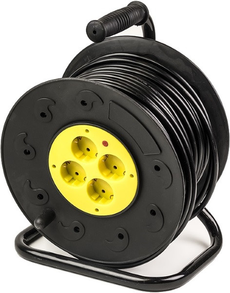 Подовжувач на котушці PowerPlant 50 м, 3x2.5мм2, 16А, 4 розетки, морозостійкий (JY-200250) PPRA16M50S4L