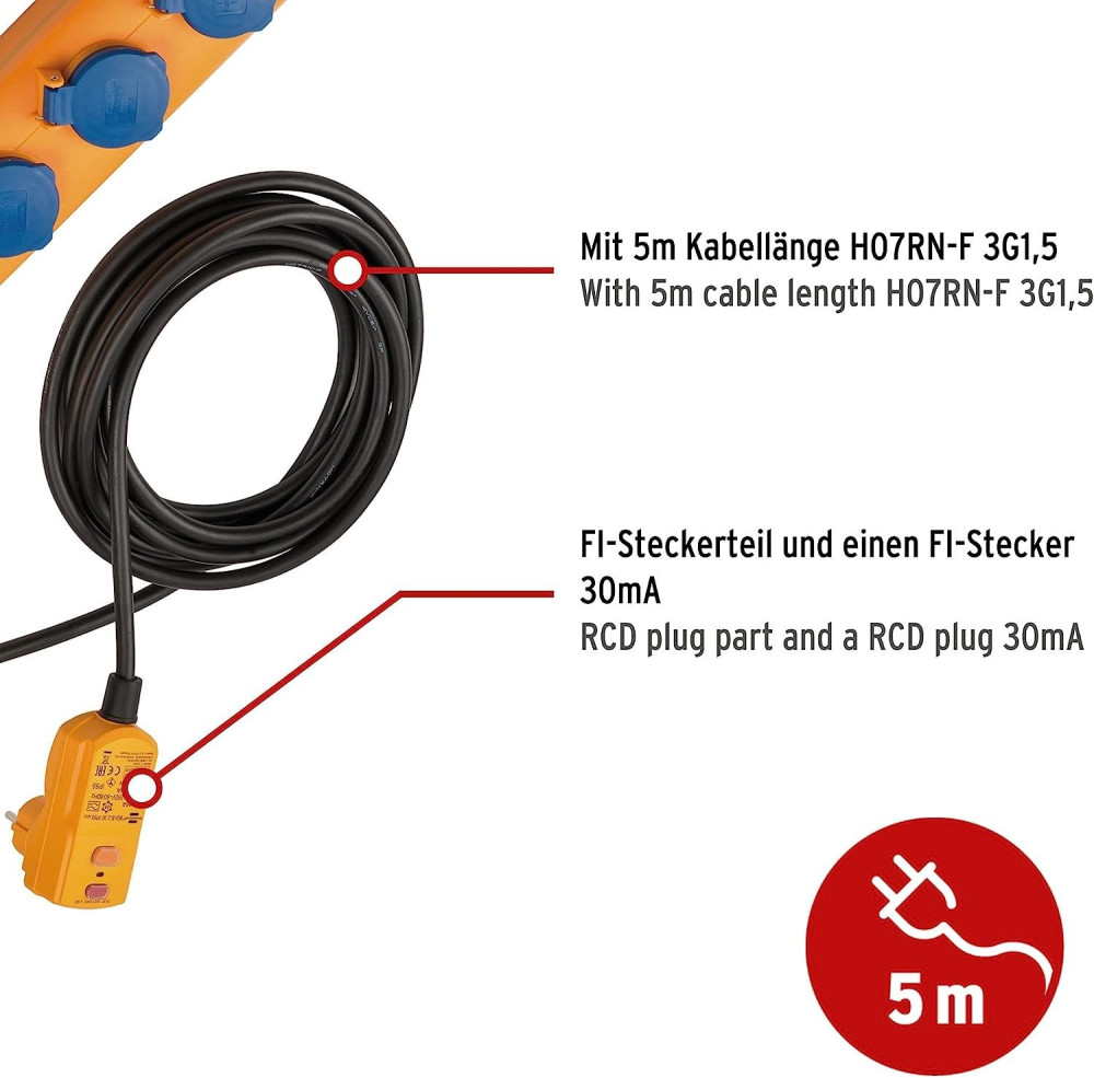 Розеток із заземленням (тип F) - 5 шт.,