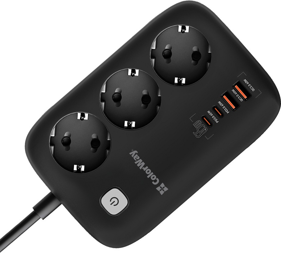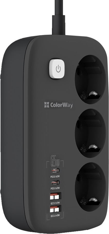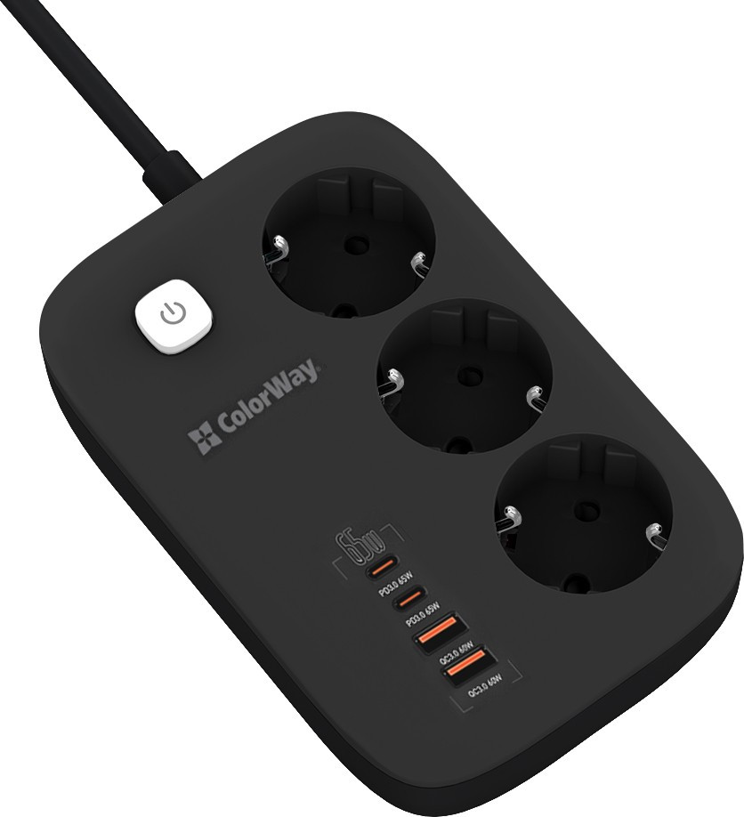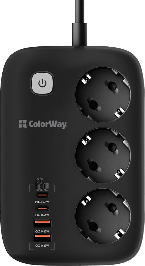 Сетевой фильтр питания ColorWay CW-CHE34PDB 3 роз4USB GaN3 Pro (CW-CHE34PDB)