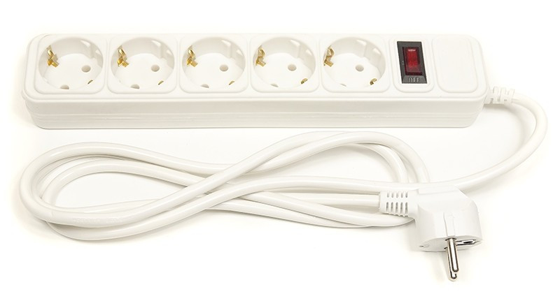 Мережевий фільтр PowerPlant 1.8 м, 3x1.5мм2, 10А, 5 розетoк, євростандарт (JY-10561.8) PPSA10M18S5