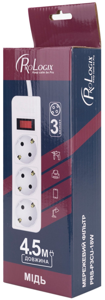 Фільтр живлення ProLogix (PRS-P3CU-45W) 3x1.0мм2, 3 розетки, 4.5 м, білий