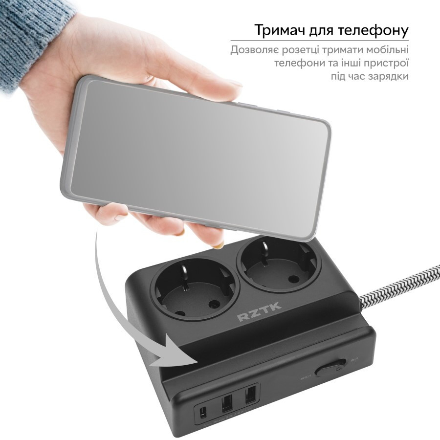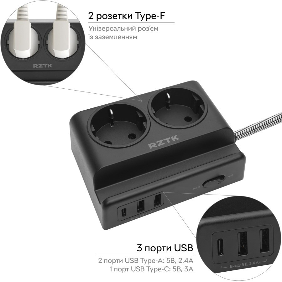 Фільтр-подовжувач RZTK Power Strip 22 USB-AUSB-C