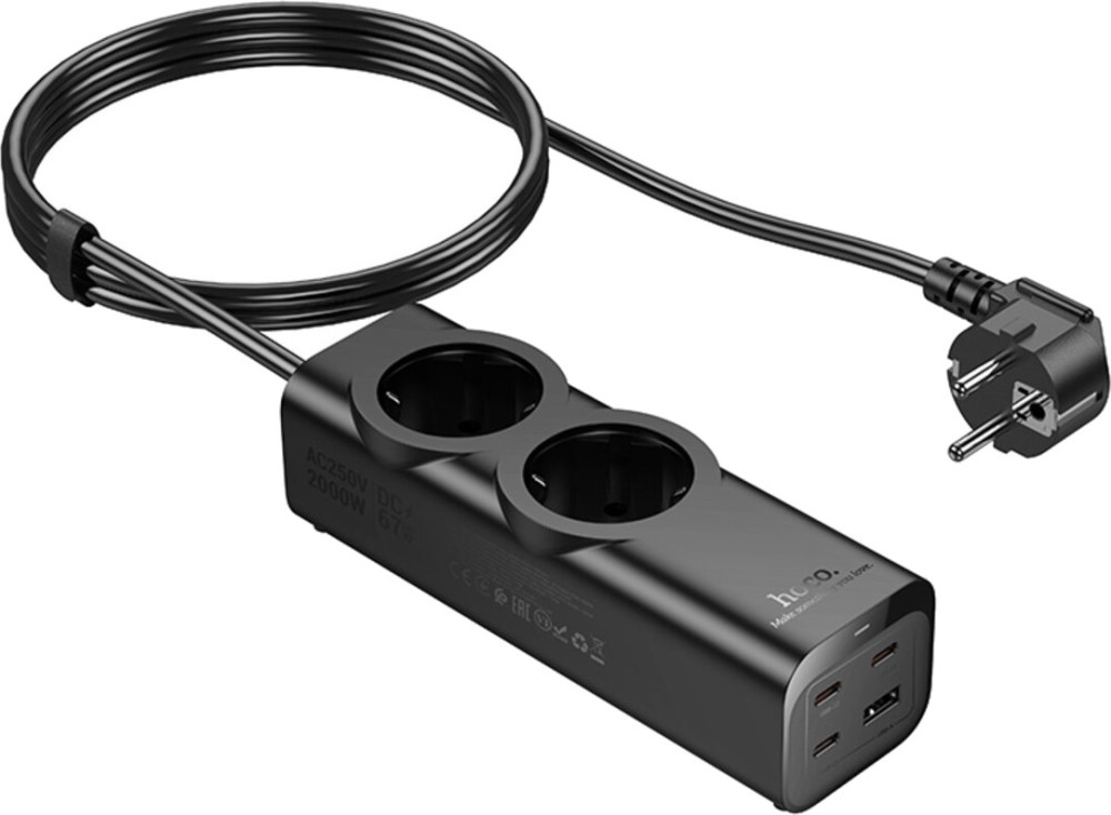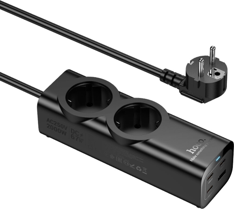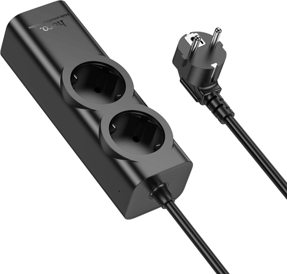 Подовжувач мережі HOCO NS10 Wisdom 2-position (PD67W3C1A) desktop socket (EUGER) Black