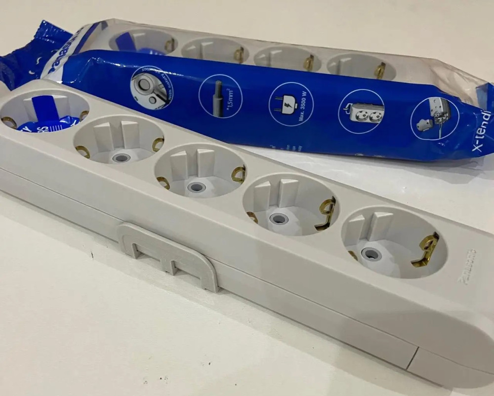Колодка Panasonic X-tendia із заземленням 5 гнізд, із захисними шторками, сіра (WLTB04502GR-UA)