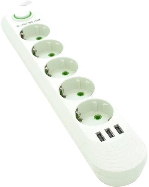 Мережевий фільтр живлення Voltronic F05U, 5роз EU, 3*USB White (F05U-White)
