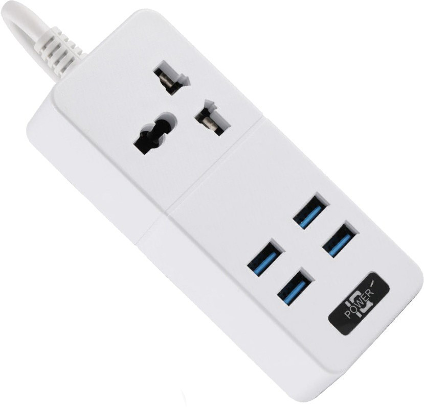 Мережевий фільтр ТВ-Т06, 1 розетка + 4 USB, 2 м, перетин 3х0, 75мм, 2500W, White, Box