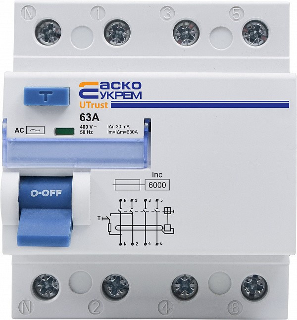 Реле струму ASKO-UKREM PZV UTrust 3PN 63A 30mA AC