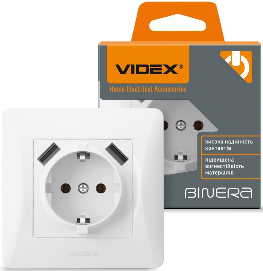 Розетка Videx VF-BNSK1GU2-W