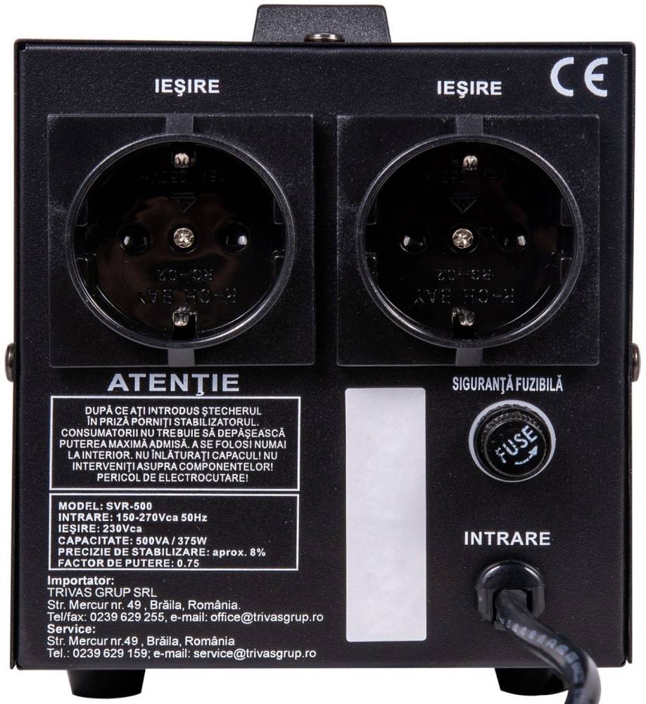 Стабілізатор Conter SVR-500VA375W однофазний, монтажу пола, LED дисплей, DC150-270V, AC230±8%, 2*Shuko, релейний
