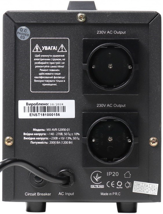 Стабілізатор напруги Maxxter MX-AVR-S2000-01
