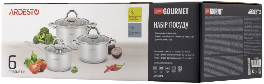 Набір посуду Ardesto Gemini Gourmet Andria, 6 предметів, нержавіюча сталь AR1906GPS